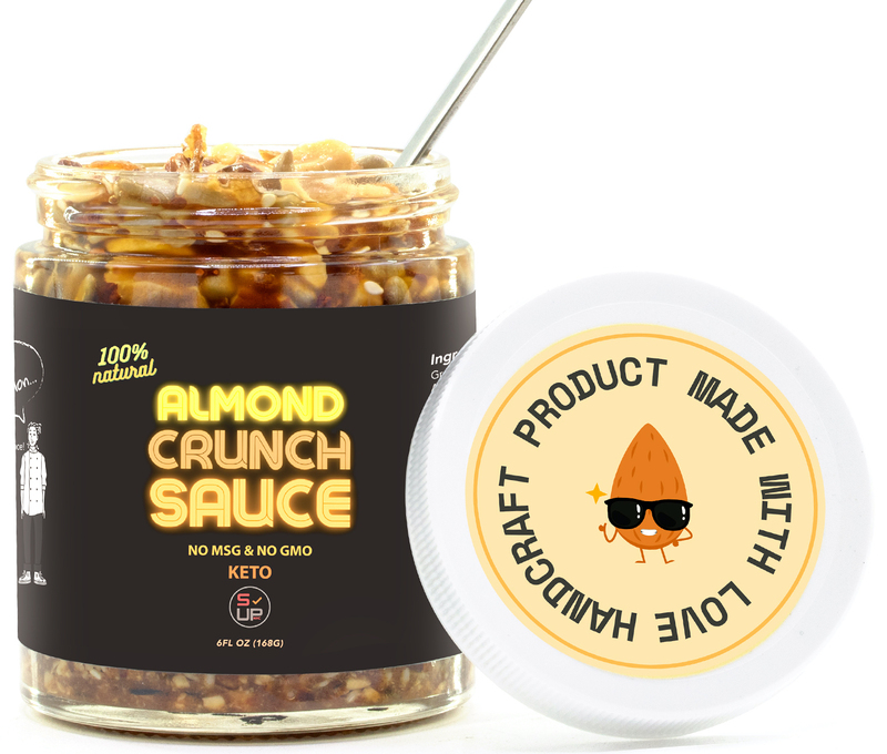 Grapeseed Oil, Roasted Almonds, Fried Onion, Fried Garlic, Organic Coconut Palm Sugar, Himalayan Salt, Korean Chili Flakes, Chili Flakes, Dried Thyme