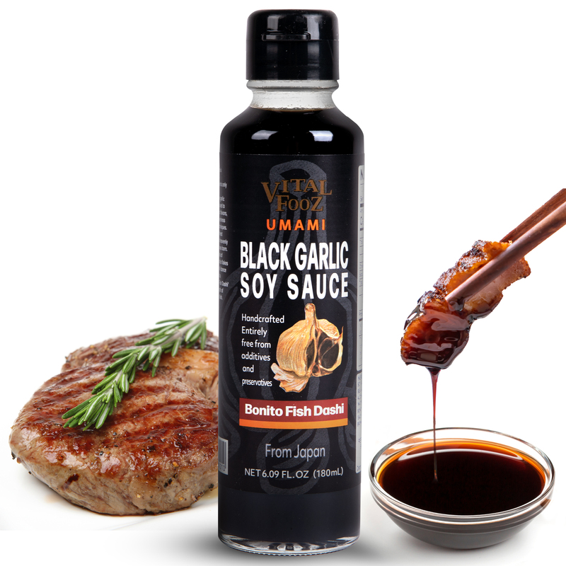 This decadent sauce is crafted with natural, hand-picked ingredients only found in Japan. Only a rare-eight clove-garlic variety grown in Kyushu is used to bring out its intrinsic flavors. antioxidants and sweetness through artisanal techiniques. Combined with the finest Japanese dashi, this heavenly garlic umami sauce was born. This savory smokiness of dashi stock from bonito flakes from 'Makurazaki' will dance on your tongue. Just a spoonful of 'Bonito Fish Dashi' sauce adds great depth of umami flavor to any dish.