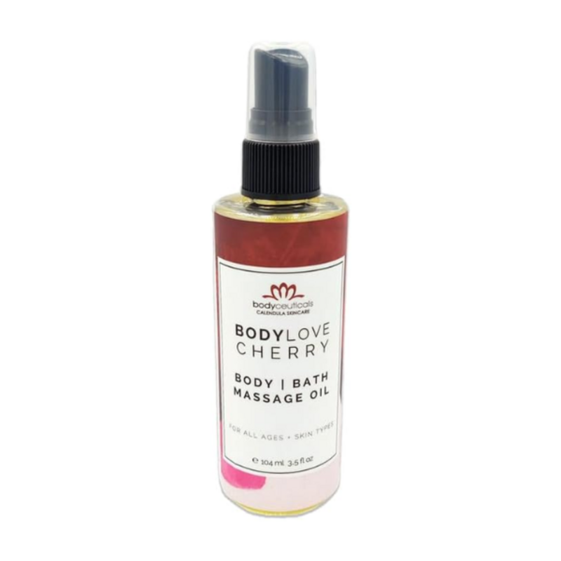 This BodyLove Cherry Calendula Oil is a 100% food-grade, silky body and massage oil made with coconut, avocado, aloe, olive oil, and organic cherry flavor. Hydrates without greasiness and delivers a sweet, natural cherry scent. Vegan, non-GMO, small-batch crafted, and gentle for daily moisturizing, bath use, or flavored massage.