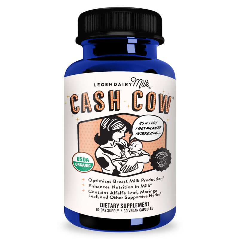 Our Cash Cow® lactation supplement contains 4 powerful organic herbs to boost breast milk supply. Alfalfa and moringa are rich sources of essential vitamins and nutrients to help nourish both mom and baby. Try our lactation capsules instead of indulging in high-sugar lactation cookies, bars, and treats. Cash Cow® can also be used in the final weeks of pregnancy to strengthen the body in preparation for birth.