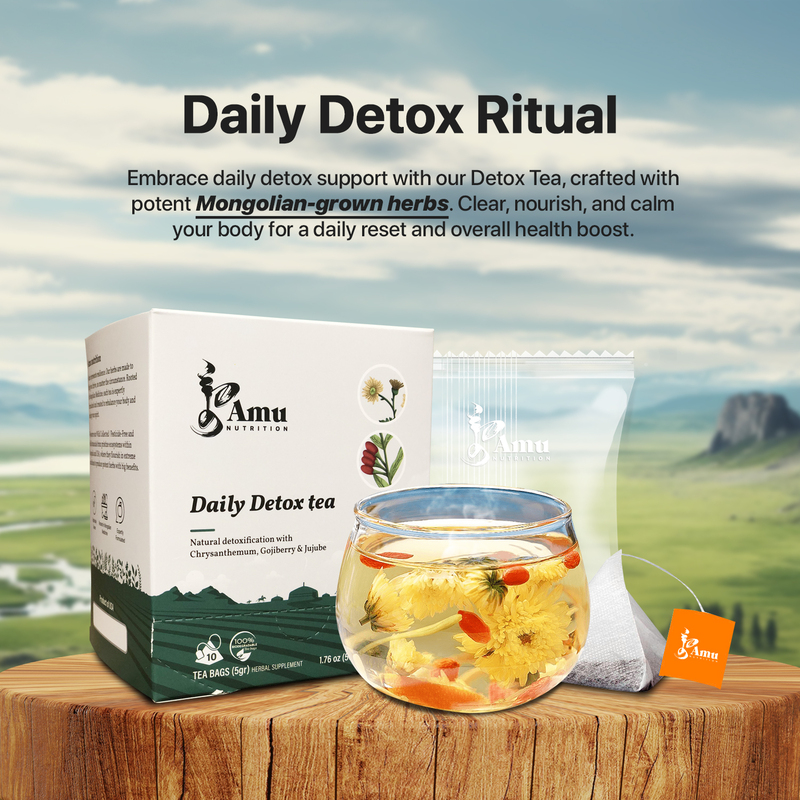 Indulge in a daily detox ritual with our Daily Detox Tea, featuring a blend of potent Mongolian-grown herbs. This caffeine-free herbal tea offers a mildly sweet and floral taste, promoting overall well-being and balance. Enjoy the harmonious notes of chrysanthemum, gojiberry, lotus seed, and jujube in every cup. Each biodegradable cane sugar teabag can be brewed 2-3 times, providing effective detox support. Simply steep in hot water for 3-5 minutes to reset and nourish your body.