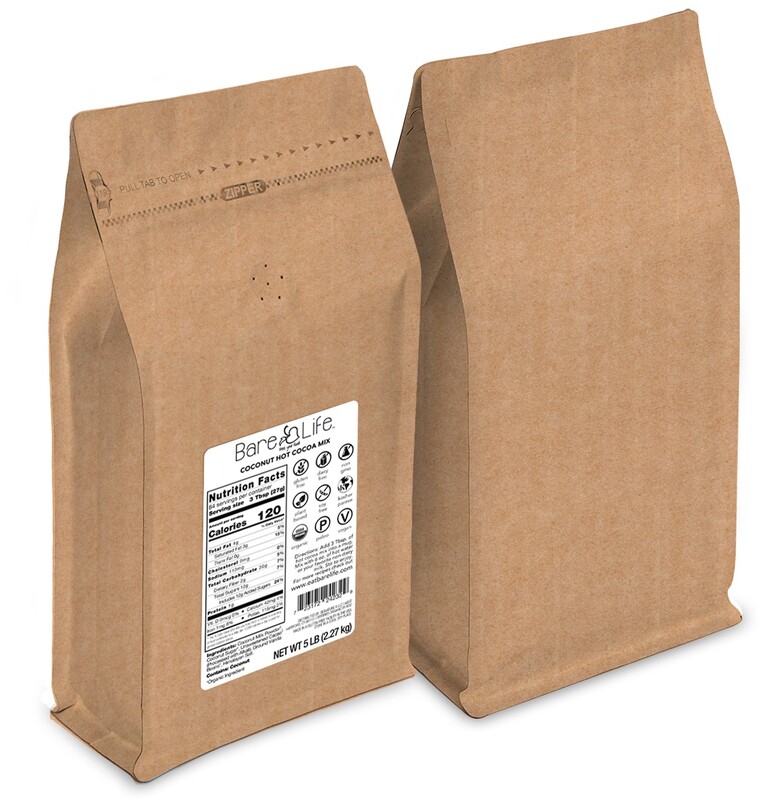 Looking for an easy-to-use, unique allergen friendly menu item, or ingredient replacement? All you need is hot water to give your customers a deliciously chocolatey vegan treat! Simply add our hot cocoa to a dispenser or mixing machine, scoop and serve in individual mugs, or pump up your allergen friendly food options by creating some of our dozens of recipes. Some of our decadent recipes include hot cocoa fudgesicles, smoothies, brownies, pancakes. See even more recipes on our website: www.eatbarelife.com/recipes Our hot cocoa is a must have item for all of your foodservice needs.