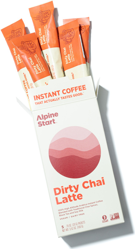 Inspired by our world travels, we wanted to provide a sweet, spicy and aromatic option to our coffee lineup. We blended Traditional Chai Spices, Black Tea and Soy Milk with our 100% high altitude Colombian Arabica coffee to create a complete sensory experience. Grab a packet of Alpine Start Dirty Chai Latte and start your escape from the everyday, one sip at a time. No fancy baristas. No waiting. No nonsense. Just what you need for an instant escape, spicing things up, or curling up on the couch.