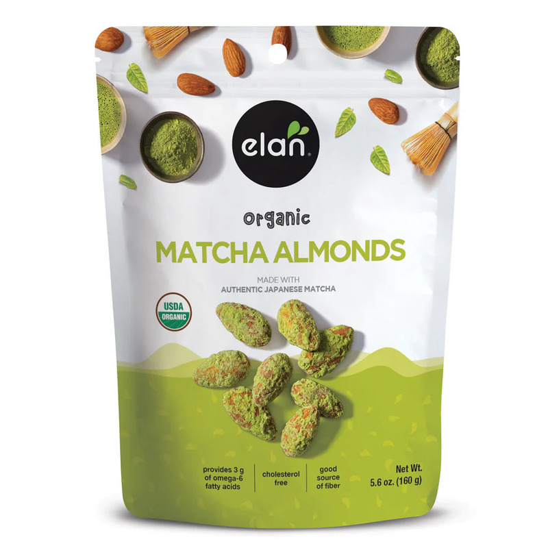 Elan Organic Matcha Almonds are roasted and coated with authentic Japanese matcha for a bold, earthy flavor and satisfying crunch, perfect for matcha lovers seeking a wholesome snack.