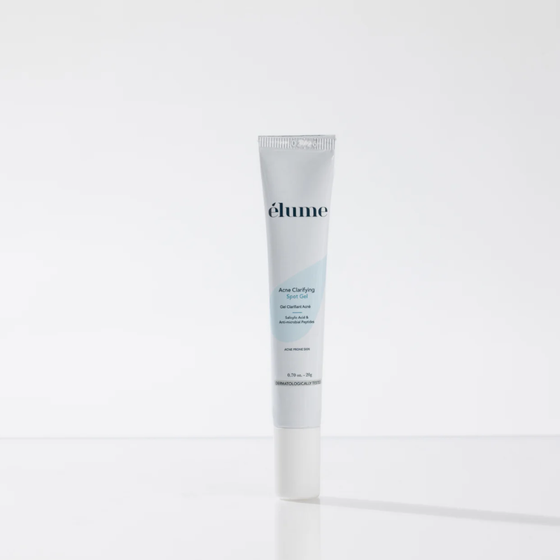 Elume Acne Clarifying Spot Gel is formulated to target and reduce active acne breakouts while preventing new blemishes from forming. Powered by Salicylic Acid for exfoliation and Tea Tree Oil for antibacterial benefits, it helps reduce redness, soothe irritation, and calm inflamed skin. Niacinamide and Aloe Vera hydrate and repair the skin barrier, making it suitable for sensitive and acne prone skin. The lightweight gel absorbs quickly for day or night use.