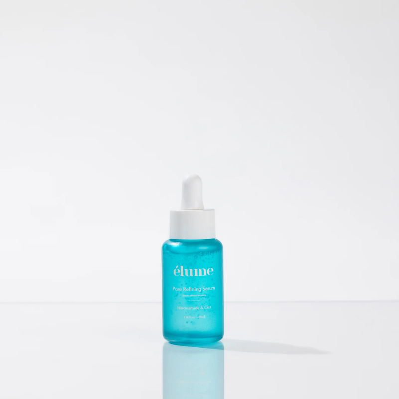 Elume Pore Refining Serum reduces the appearance of enlarged pores and balances oil with niacinamide, Cica, and red seaweed extract. Its lightweight formula smooths texture, calms irritation, and supports healthier, clearer-looking skin. Suitable for oily and combination skin types.