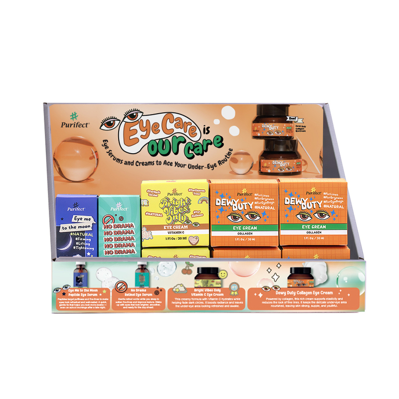 Eye Me To The Moon Peptide Eye Serum 3 No Drama Retinol Eye Serum 3 Bright Vibes Only Vitamin C Eye Cream 4 Dewy Duty Collagen Eye Cream 8