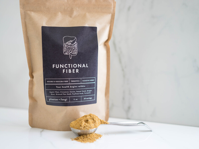Plantae & Fungi is proud to introduce our Functional Fiber! By ingesting fiber daily, you are establishing a healthy base for your entire body and mind. When you nourish and support your body’s digestive system, you balance your hormones, maintain blood sugar, and remove toxins. Our Functional Fiber is a blend of soluble and insoluble fiber, prebiotics, and digestive herbs to create harmony from within. Includes Apple Fiber, Cinnamon, Cocoa, Fennel Seed, Ginger Root, Flax Seed, Psyllium Husk, and Turmeric.