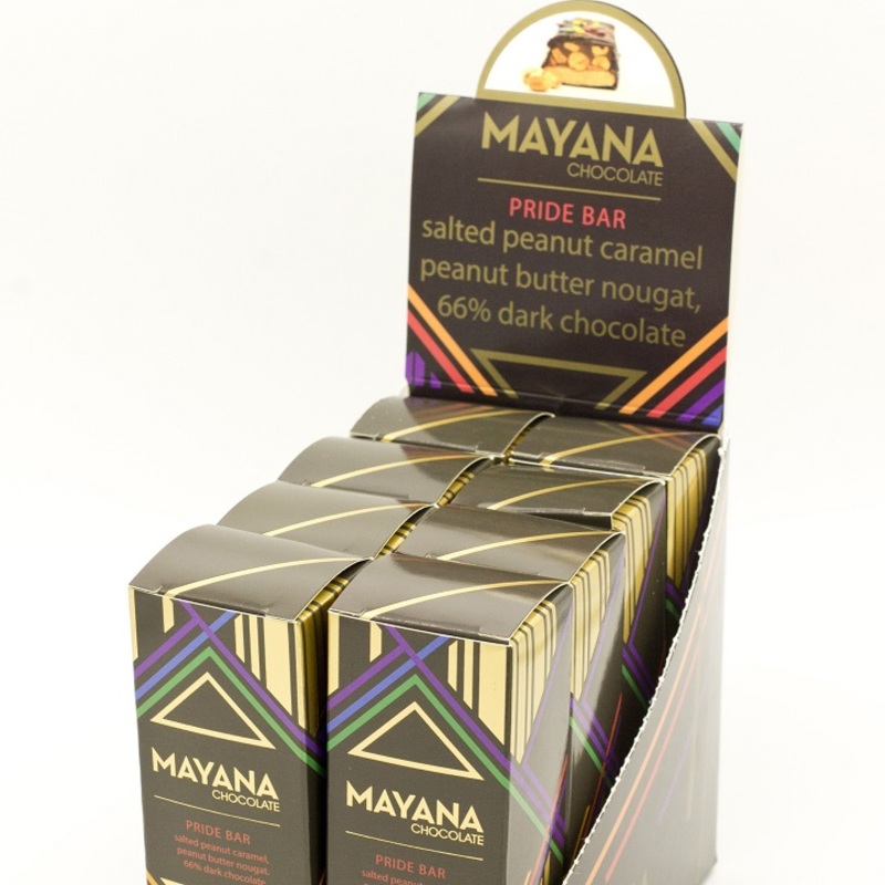 dark chocolate (cocoa beans, sugar, soy lecithin, natural vanilla flavor), caramel (sugar, water, heavy cream {milk, carrageenan}, butter (sweet cream, salt), sea salt, dry roasted peanuts (peanuts, contains 2% or less of: sea salt, spices {contains celery}, dried onion, dried garlic, paprika, natural flavor, sugar, gelatin, torula yeast, cornstarch, dried corn syrup, maltodextrin), nougat (sugar, corn syrup, egg whites, sugar, sea salt, crunchy peanut butter {peanuts, sugar, hydrogenated vegetable oil, salt, molasses}), naturally colored rainbow confetti (cane sugar, corn starch, palm oil, palm kernel oil, sunflower lecithin, natural vanilla flavor, spirulina extract for color, riboflavin for color, vegetable juice for color, annatto extract for color, carnuba wax)