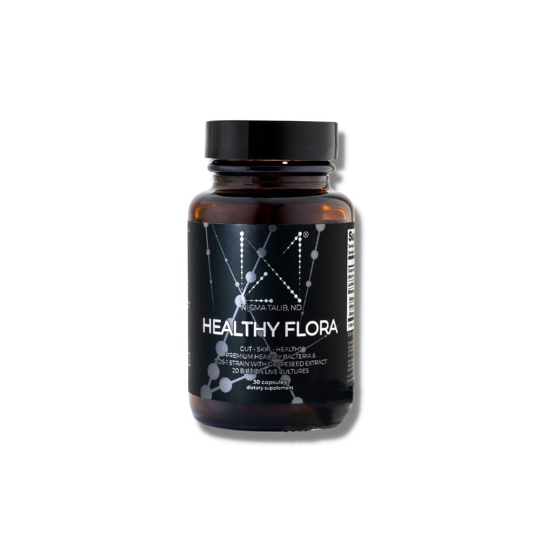 Formulated by Naturopathic Dr Nigma Talib, these 'Healthy Flora' supplements are packed with a researched blend of probiotics to improve digestion and overall gut health. Each capsule is packed with a researched blend of probiotics to improve digestion and overall gut and optimal skin health. Each capsule contains a premium blend of one of the most researched probiotics available; the famous Lactobacillus acidophilus DDS1 strain with a special blend of bifidobacteria and grape seed extract, an antioxidant that works to revitalize your system from the inside out.