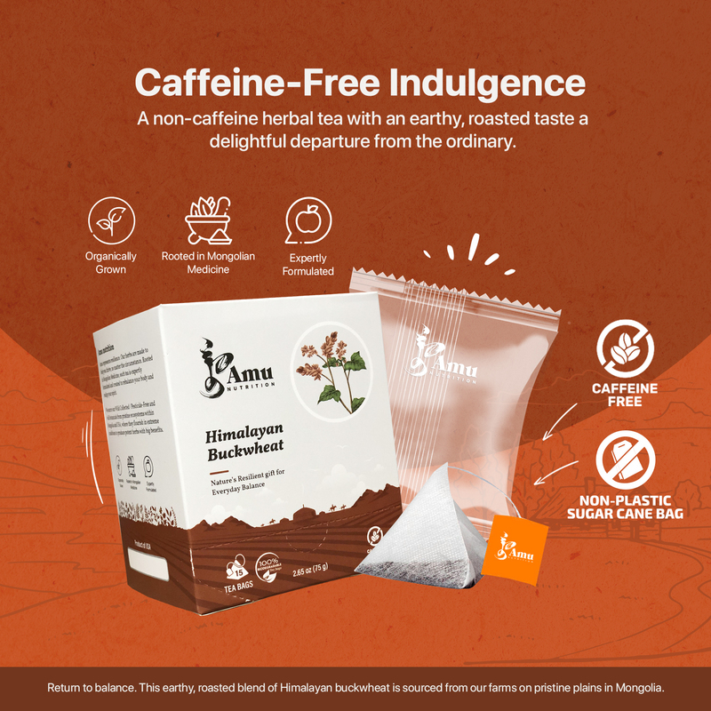 Discover the wellness benefits of our Himalayan Buckwheat Tea, expertly crafted to enhance digestion, balance sugar levels, and strengthen immunity with powerful phytonutrients and high rutin content. This caffeine-free herbal tea offers an earthy, roasted flavor, making it a comforting coffee alternative with a hint of natural sweetness to satisfy sugar cravings. Enjoy the high potency nutrition of our tea, designed for immune support and overall well-being. Our eco-friendly packaging features biodegradable cane sugar teabags, ensuring a pure and sustainable tea experience.