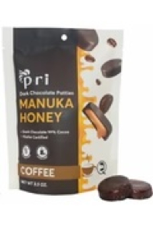 Our Coffee Chocolate Patties are a new favorite indulgence: a velvety smooth dark chocolate shell filled with layers of coffee and Manuka Honey in every bite.