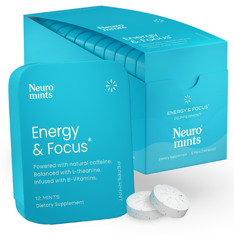 Natural Caffeine + L-theanine + B Vitamins | Sugar free + Gluten free + Non GMO + Vegan | Peppermint Flavor