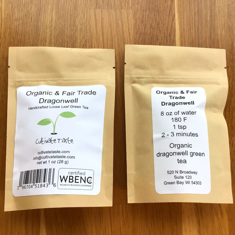 Our organic and Fair Trade Certified Dragonwell green tea is grown in the Jiangxi region and processed in the Dragonwell style. Its rose-tinted gold infusion is smooth, light-bodied, nutty and buttery texture. The well-balanced flavor profile of the liquor suggests freshly cut grass and toasted chestnuts, with a somewhat floral fragrance.