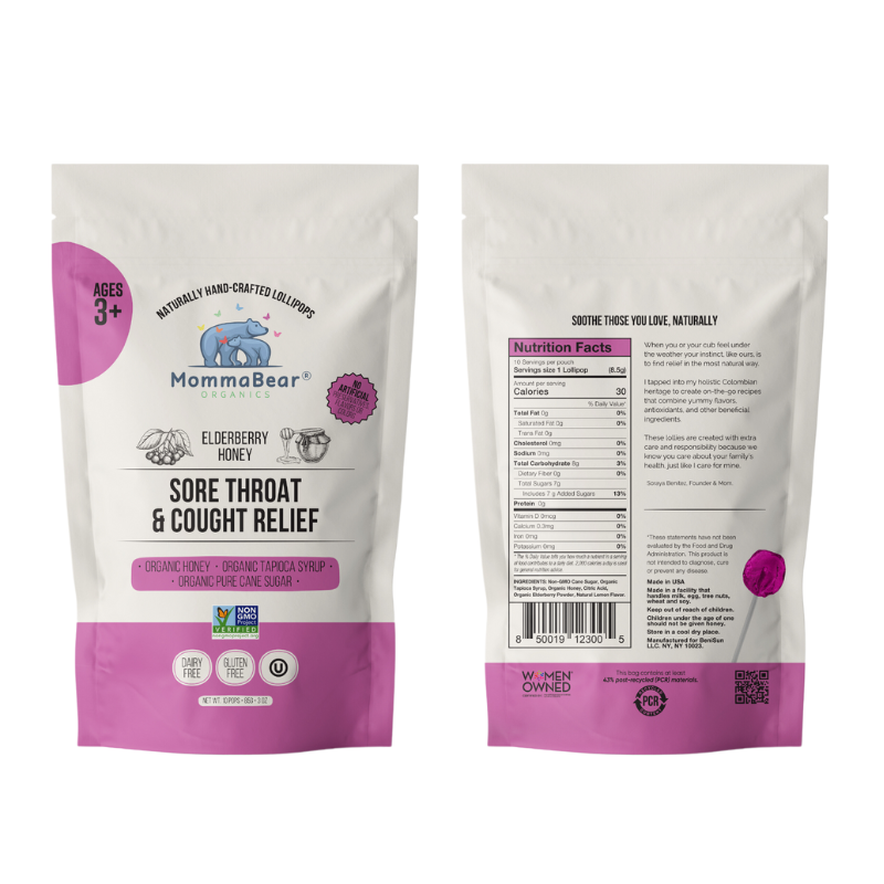 Elderberry & Honey lollipops to help soothe the symptoms of sore throat and cough. Artisanally crafted in small batches by using simple organic ingredients, our lollipops are perfect for on-the-go. Ease sore throat and coughs with these sweet organic homeopathic suckers.