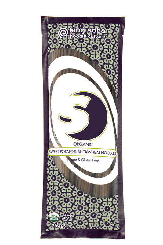 King Soba Organic Sweet Potato & Buckwheat Noodles are a delicious blend of two healthy foods, which are also on the low glycemic index. Buckwheat is rich in minerals such as magnesium, and its protein characteristics are considered to help lower cholesterol. Sweet potato is not only high in potassium, but it is also a low-fat food, rich in vitamin A, E, and C. King Soba Organic Sweet Potato & Buckwheat Noodles are kosher, ideal for vegetarians, vegans, celiacs or wheat and gluten sensitive.