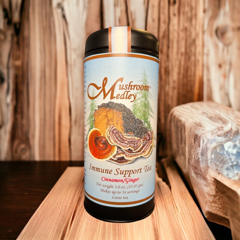 100% organic Ingredients: chaga mushroom, turkey tail mushroom, astragalus root, cinnamon bark, decorticated cardamom seed, reishi mushroom, chicory root, orange peel, ginger root
