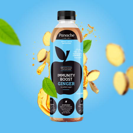 Non-soda botanical infusions in 100% apple juice. The botanicals - ginger/ turmeric/sour cherries/aronia berries- give boost to busy lives, convenient, price effectively. No added sugar. Ayurvedic (food science behind yoga) recipes use apple's natural sugars for a gluten, sulfite free, vegan beverage. Packed in recycled 12 oz bottle. Shelf stable.