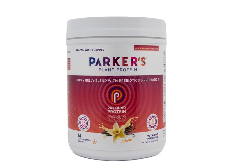 Parker’s Plant Protein and the Happy Belly Blend is your gut health solution. Finally, a plant protein that tastes great, has a smooth creamy texture, and does the belly good.