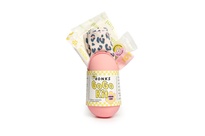 The Bonksยฎ GoGo Kit for menstrual care contains one of everything you need to keep you clean and covered for that time of the month. Our kit is comprised of organic, biodegradable and sustainable components. All done? Place your favorite emergency undies and period products back in the reusable zip pouch for next time!