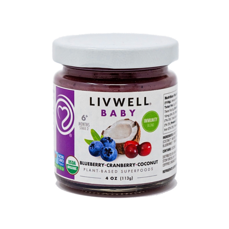 LIVWELL Baby sauces are premium organic baby food products withpure wholesome ingredients, healthy fats from coconut milk, and superfoods like organic blueberries to help your little one thrive. With minimal heat processing, vitamins and nutrients are preserved to give your little one the highest nutritional value with every bite.