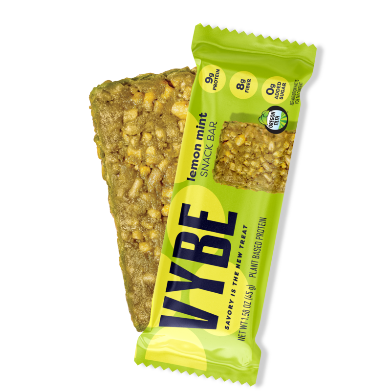 Vybe snack bars cater to health-conscious shoppers. Our savory, plant-based bars feature curated spice blends like Lemon & Mint, delivering sustained energy and functional benefits.