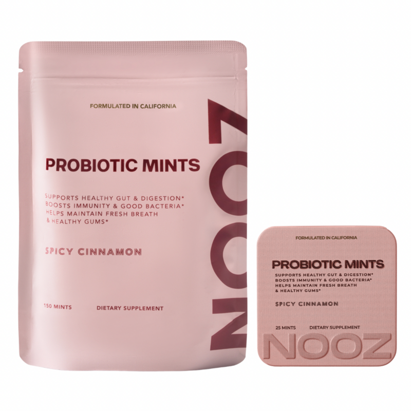 Unlike probiotic pills or drinks that require refrigeration, NOOZ Probiotic Mints are shelf-stable, sugar-free, and bursting with a bold, spicy cinnamon flavor—so you can freshen your breath and nourish your microbiome anytime, anywhere.