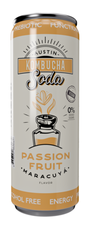 Pasion Fruit Natural Prebiotic Soda Austin Kombucha