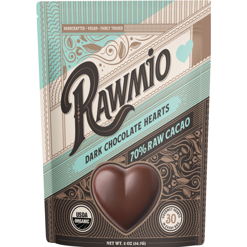 A heart is the world's most universal symbol of love, and as chocolate is love made edible, what could be more fitting than combining the two? These little bites of dark chocolate bliss are handcrafted, stone ground at low temperatures, and are made with organic, fair-trade cacao and low-glycemic coconut sugar. This is pure, unadulterated Rawmio chocolate love.