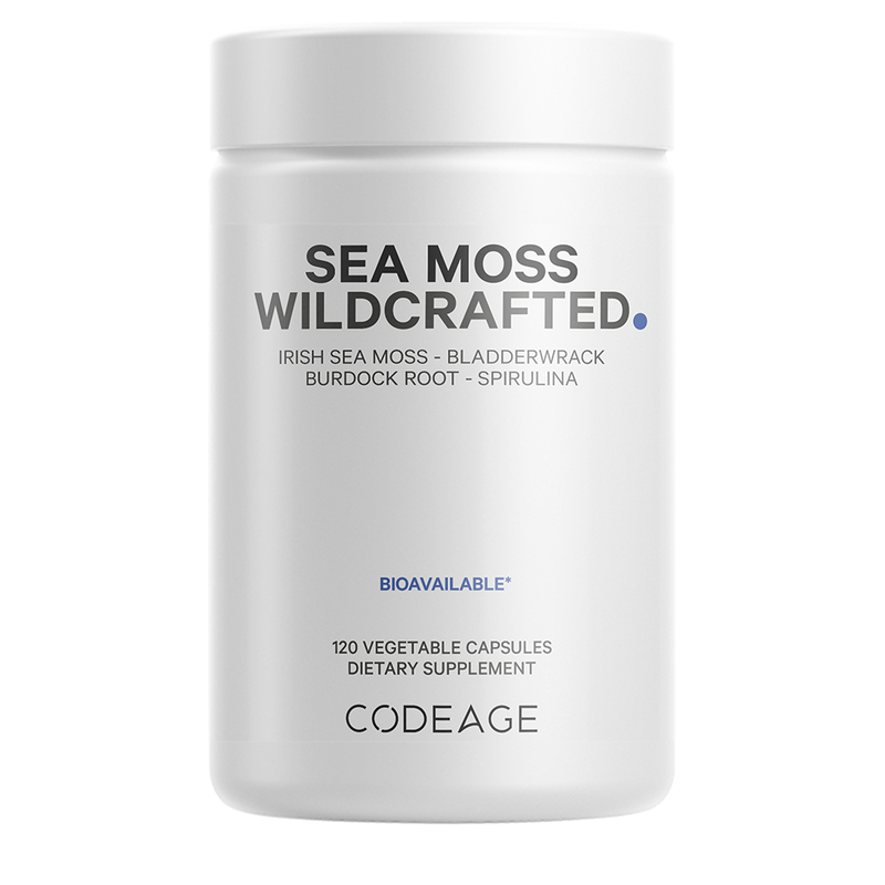 - Codeage Sea Moss Wildcrafted supplement offers 500 mg per serving of raw wildcrafted Irish sea moss paired with wildcrafted bladderwrack and 400 mg of raw wildcrafted burdock root per serving, crafting a modern seaweed formulation that’s further enriched with raw wildcrafted spirulina.