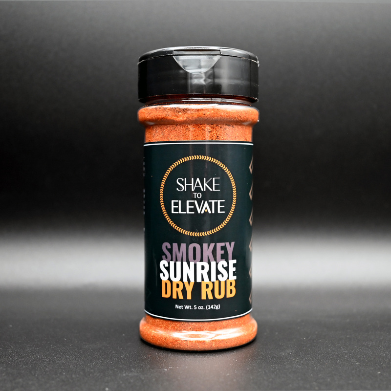 Smokey Sunrise - A rich, smooth twist on Shake to Elevate — designed to bring depth and warmth to your dishes with every shake. Like all our rubs, it’s free from salt, mustard, and excessive sugar, letting real flavor take the spotlight. This blend delivers a subtle smokiness with notes of roasted coffee and a whisper of sweetness — perfect for Pork, Beef, Chicken, Lamb, or even hearty veggies. Smokey Sunrise brings that early morning campfire vibe straight to your grill.