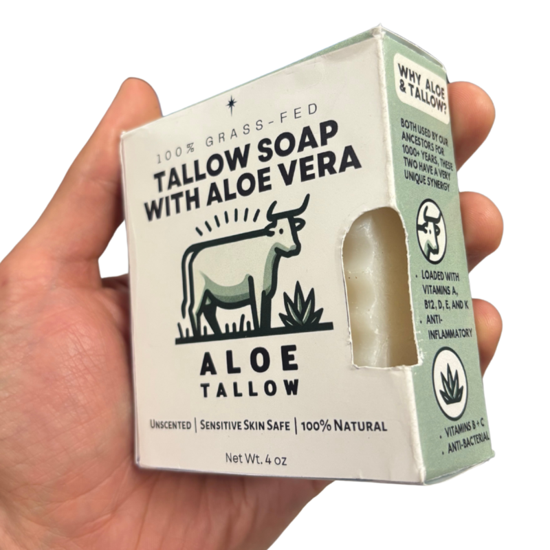 Ingredients: Saponified 100% Grass-Fed Beef Tallow, Organic Aloe Vera.