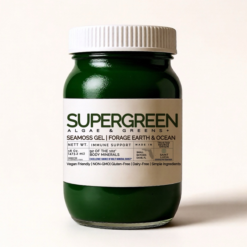 Alkaline water, 100% Imported Origin Saint Lucia, - Wild Wild Harvest Seamoss, MORINGA, HAWAIIAN SPIRULINA, GINGER ROOT, TARRAGON PLANT, FENNEL SEED, ANISE, PEPPERMINT, CARAWAY, CORIANDER, CLOVE, CINNAMON