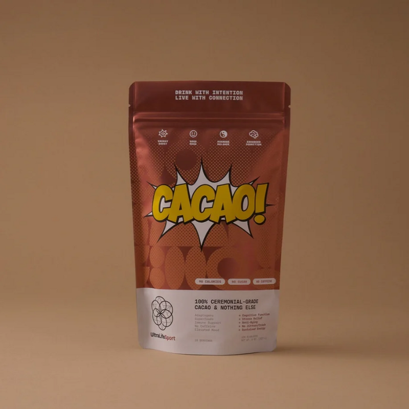 UltraLife Sport Cacao! is a sacred superfood powder made from 100% USDA-Organic ceremonial cacao sourced from Ecuador. It offers gentle, sustained energy via theobromine, along with minerals like magnesium, iron, and calcium. Crafted to support emotional clarity, heart-centered connection, and antioxidant protection for rituals or daily wellness.