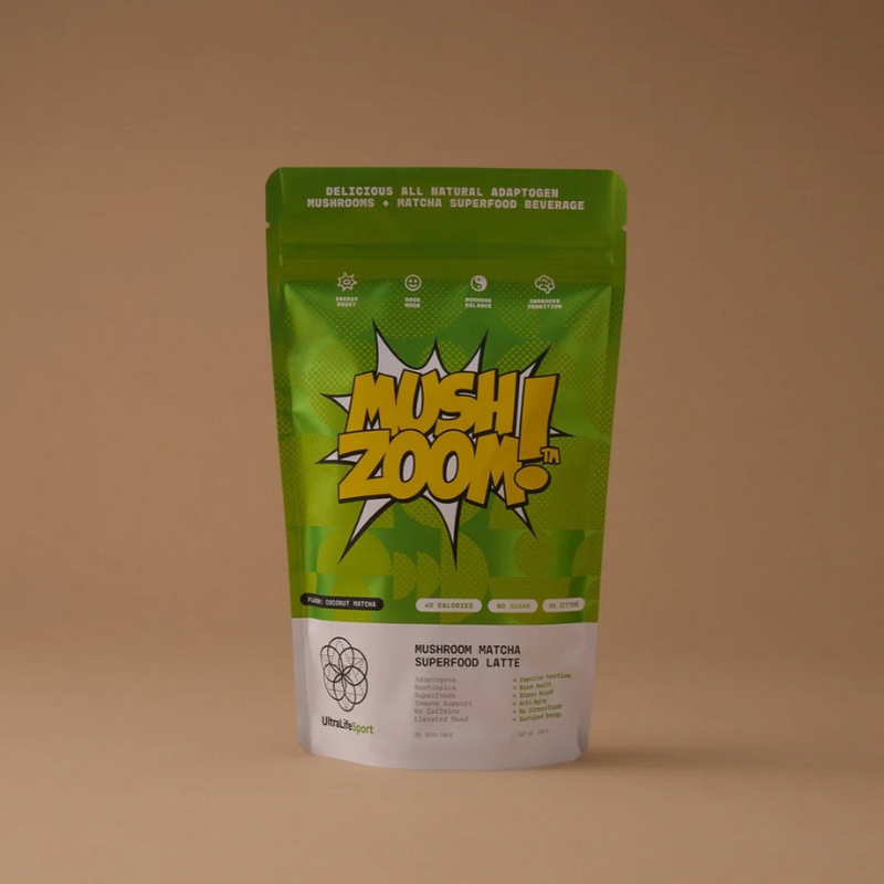 MushZoom by UltraLife Sport is a vibrant, energizing coconut-matcha drink powder designed to fuel both mind and body. It blends premium matcha with seven potent fruiting-body mushrooms, creamy coconut milk powder, MCT oil, sea salt, and Mucuna Pruriens to support focus, endurance, and mood — without caffeine crash. Mix one scoop into hot or cold water or your favorite milk alternative.