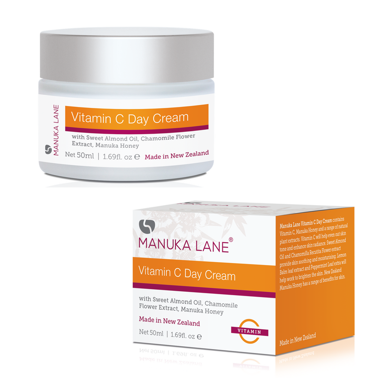 Manuka Lane Vitamin C Day Cream contains Vitamin C, Manuka Honey, and a wide range of plant extracts. Vitamin C is a potent antioxidant that helps the skin’s natural regeneration process. It also brightens the skin. Manuka Honey has significant anti-inflammatory and antibacterial properties so it provides great benefits to your skin. It will help remove skin blemishes. The plant extracts in this Manuka Lane Vitamin C Day Cream are Meadowfoam Seed Oil, Jojoba Seed Oil, Soybean Oil, Sweet Almond Oil, Matricia Flower Extract, Lemon Balm, Peppermint, Lady’s Mantle, Cowslip, Yarrow, and Speedwell. This big range of plant extracts along with the other ingredients moisturizes, brightens, conditions, and helps clear the skin on your face and neck. 50ml | 1.69fl.oz