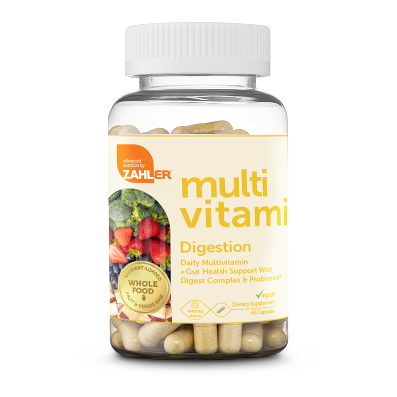"Zahler Multivitamin Digestion is an exclusive and innovative multivitamin formula based on cutting-edge research, sound scientific discoveries and the latest knowledge in the field of supplemental nutrition. This revolutionary formula is made with superior ingredients from superior sources for maximum absorption and benefit. In addition to having all of the qualities of a multivitamin, also included is a nutrient-loaded, clinically studied and published, whole-food fruit & veggie base plus additional targeted nutrients such as a unique Digest Blend and Probiotics to support digestion and gut health.